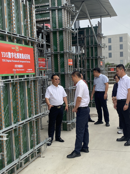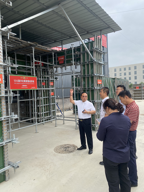 各位領導依次參觀了YDX數(shù)字化模架集成系統(tǒng)之墻模體系、梁模體系、頂模體系、柱模體系,【世界紀錄】“一掛得”高精定型模板體系等區(qū)域。隨后,雙方移步至會議室,通過觀看YDX沉浸式體驗館施工視頻、工地現(xiàn)場應用視頻、扛旗世界紀錄見證會視頻等,各位領導對北京易鼎行集團的品牌影響力、產(chǎn)品創(chuàng)新、技術服務等方面有了深入了解,并給予了高度評價。